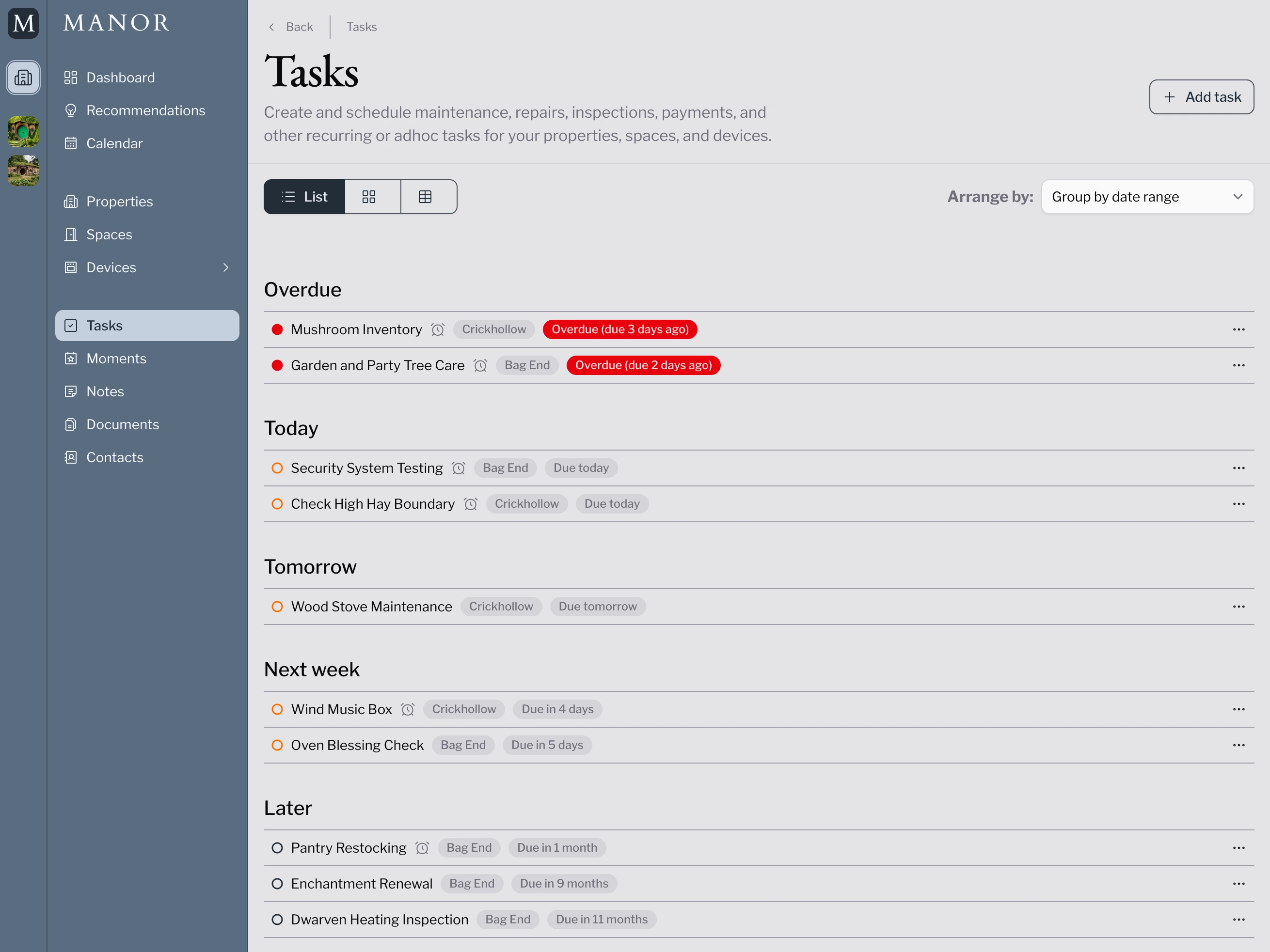 Task management with recurring schedules for maintenance, inspections, and seasonal upkeep.